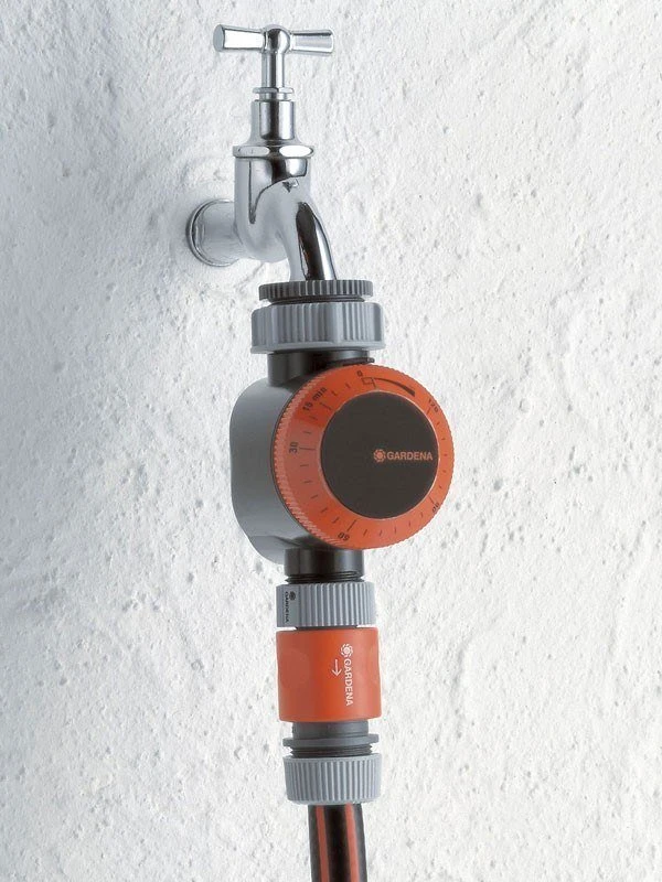 Die GARDENA Bewässerungsuhr wird am Wasserhahn angeschlossen und schaltet die Bewässerung Ihres Gartens, z.B. den Betrieb eines Regners oder einer Tropfbewässerung wie dem GARDENA Micro-Drip-System, automatisch ab. Dabei lassen sich Beregnungszeiten von fünf bis 120 Minuten einstellen.