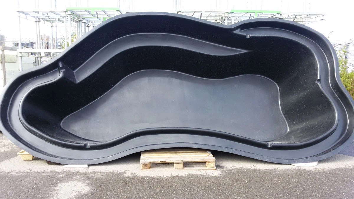Teichbecken aus glasfaserverstärktem Polyester, hergestellt im Handauflegeverfahren – daher frostbeständig, verrottungsfest und UV-beständig. Mit nahezu unbegrenzter Lebensdauer.
